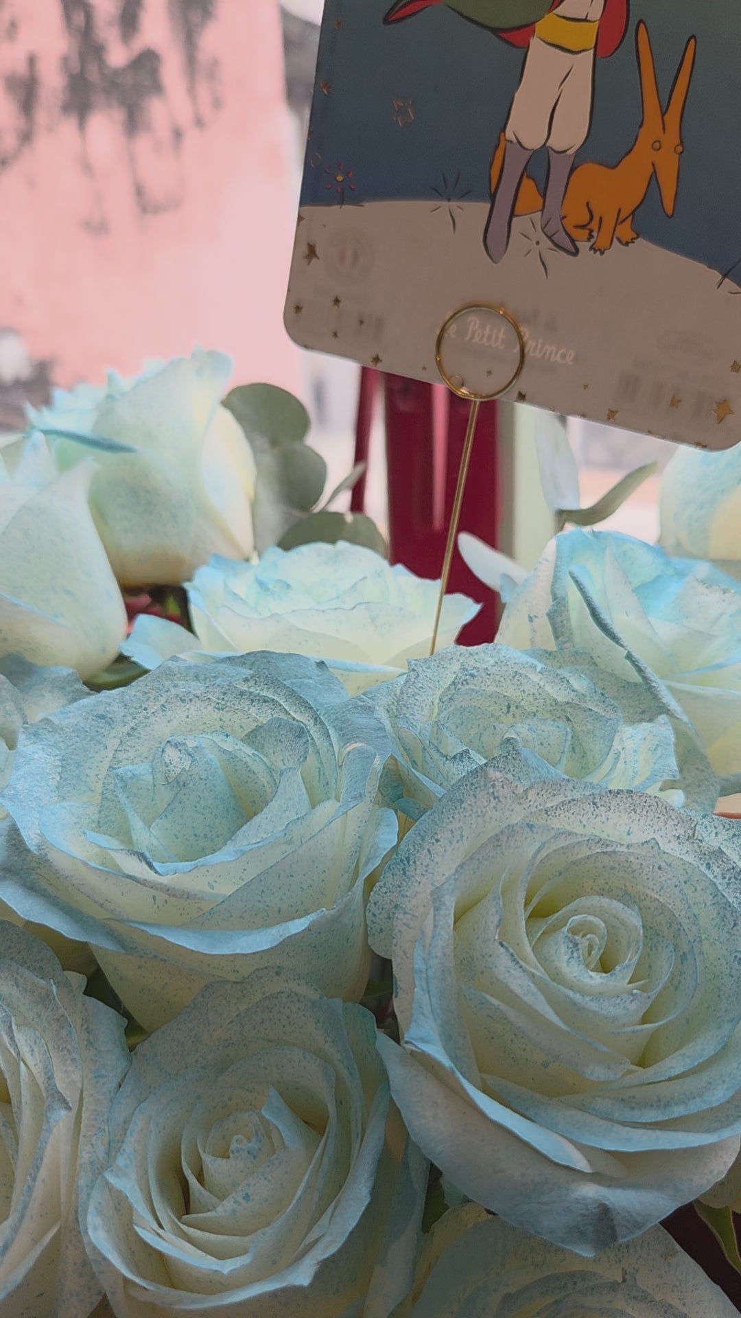 16支粉藍色玫瑰代表著奇蹟之愛、罕見的珍貴、真誠與坦白,結合藍色的神秘夢幻(奇蹟、宿命之愛)和粉色的溫柔(初戀、愛心),寓意送花者將這段感情視為生命中不可多得的奇遇,並期盼能坦誠相待、守護這份特別的愛意。